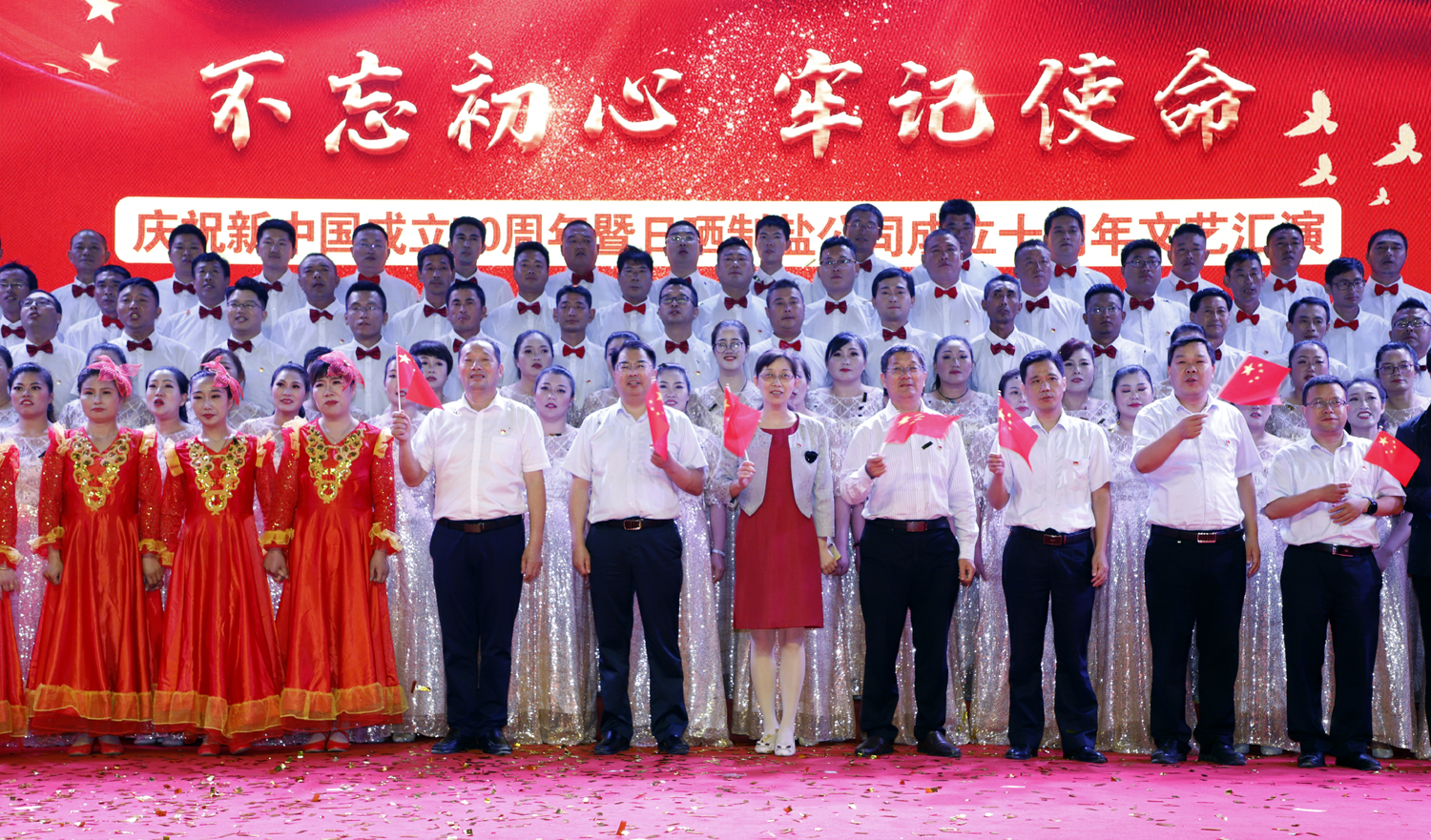 日曬制鹽公司舉辦以“不忘初心、牢記使命”為主題的慶祝新中國成立七十周年、日曬制鹽公司成立十周年文藝演出。憶初心,回顧日曬制鹽公司成立十年來的發(fā)展歷程;擔(dān)使命,展示日曬制鹽公司成立十年來發(fā)展成就。表彰先進、宣傳典型,展示廣大員工創(chuàng)新創(chuàng)業(yè)的奮斗精神和發(fā)展信心。