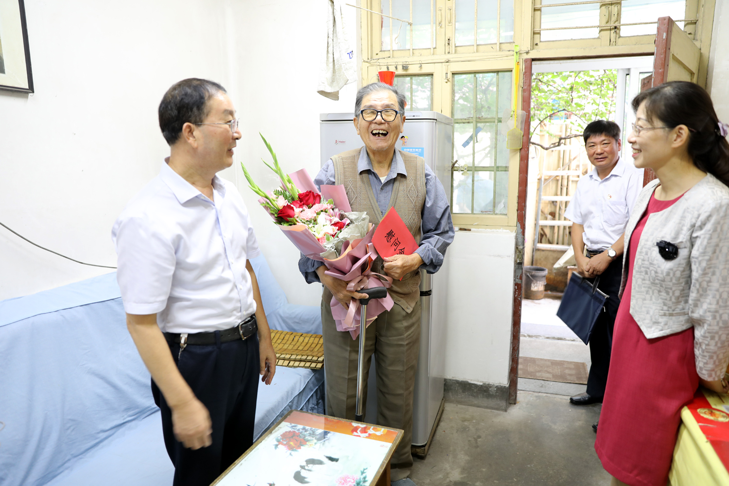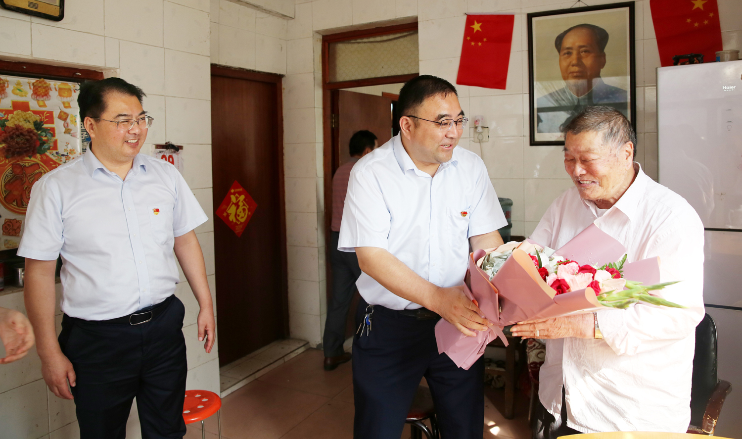 集團公司董事長、黨委書記楊龍,總經(jīng)理胡建明、黨委副書記戴鴻鳴、紀(jì)委書記汪群等領(lǐng)導(dǎo)分組走訪慰問部分建國前參加工作的老黨員、老干部,為他們送去慰問金和鮮花,同慶新中國七十周歲華誕。