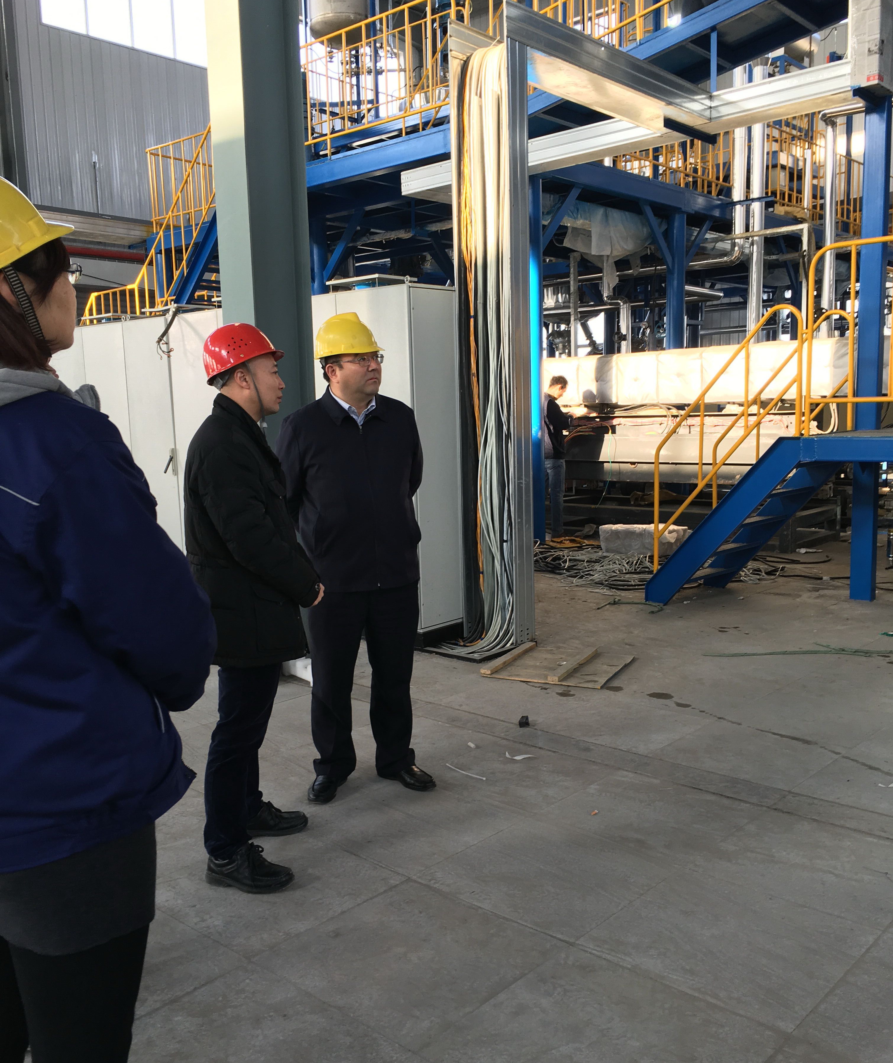 楊董事長在詳細了解了設備安裝情況后強調,要堅持不懈地抓好安全工作,保證各項安全措施落實到位;要持之以恒抓好各個環節的工程質量提升;要繼續抓緊工期,早日完工,盡早投產,盡快見效。
