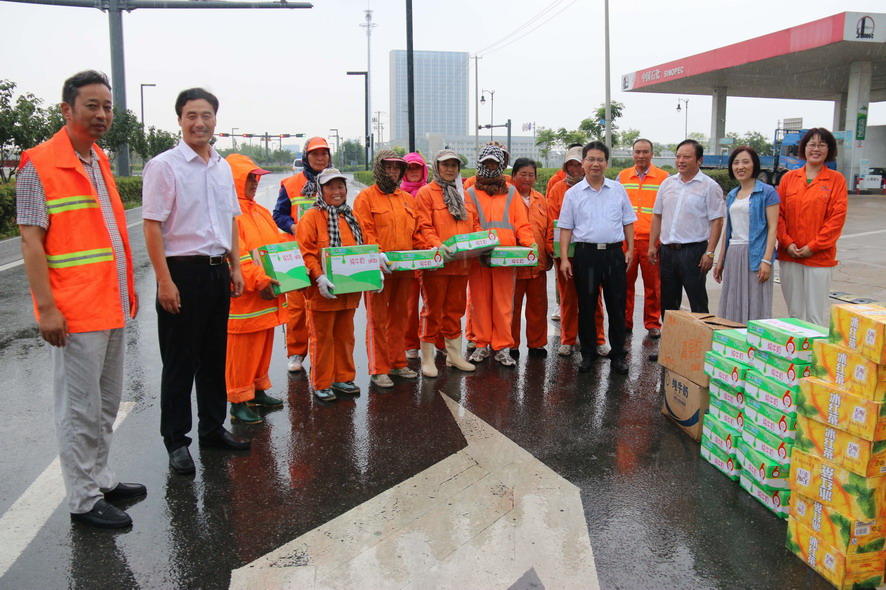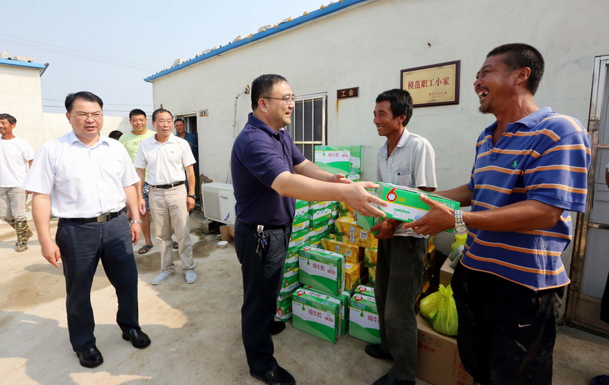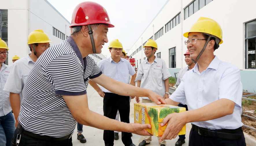 連日來,驕陽似火,酷暑難當。7月28日,集團公司楊龍、胡建明、楊國新、戴鴻鳴、匡友本、陳如軍等領導分赴基層一線,進車間、入工地、到灘(田)頭,慰問在高溫下堅守崗位的一線員工,送去冰紅茶、綠豆等防暑降溫品,在炎炎夏日中將“清涼”送到職工心坎上。
