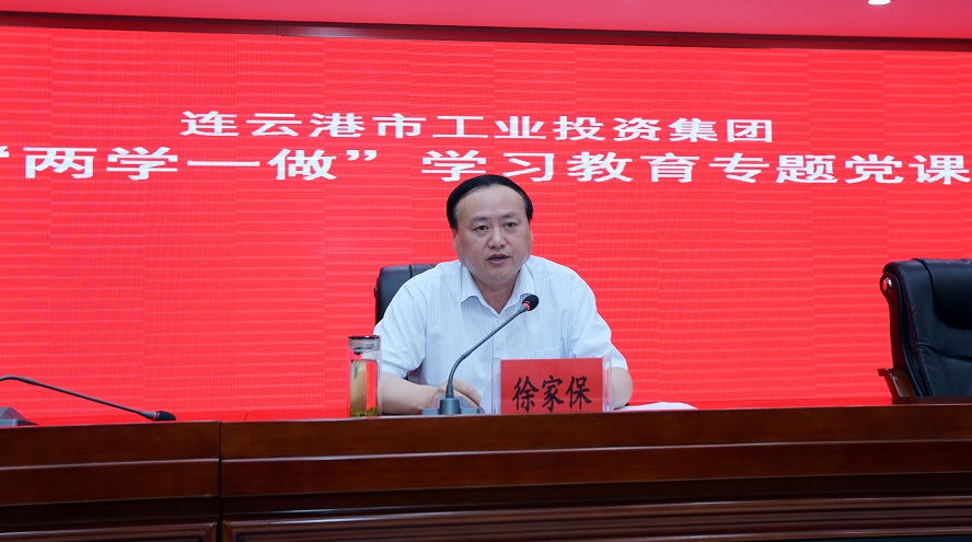 根據市委統一布署,7月7日下午,連云港市副市長徐家保結合學習習近平總書記系列重要講話和黨章黨規的體會,以做“四講四有”的合格黨員為主題,為集團公司總部和權屬單位領導班子成員上了一堂生動的專題黨課。市政府第二黨支部全體黨員也參加了旁聽。