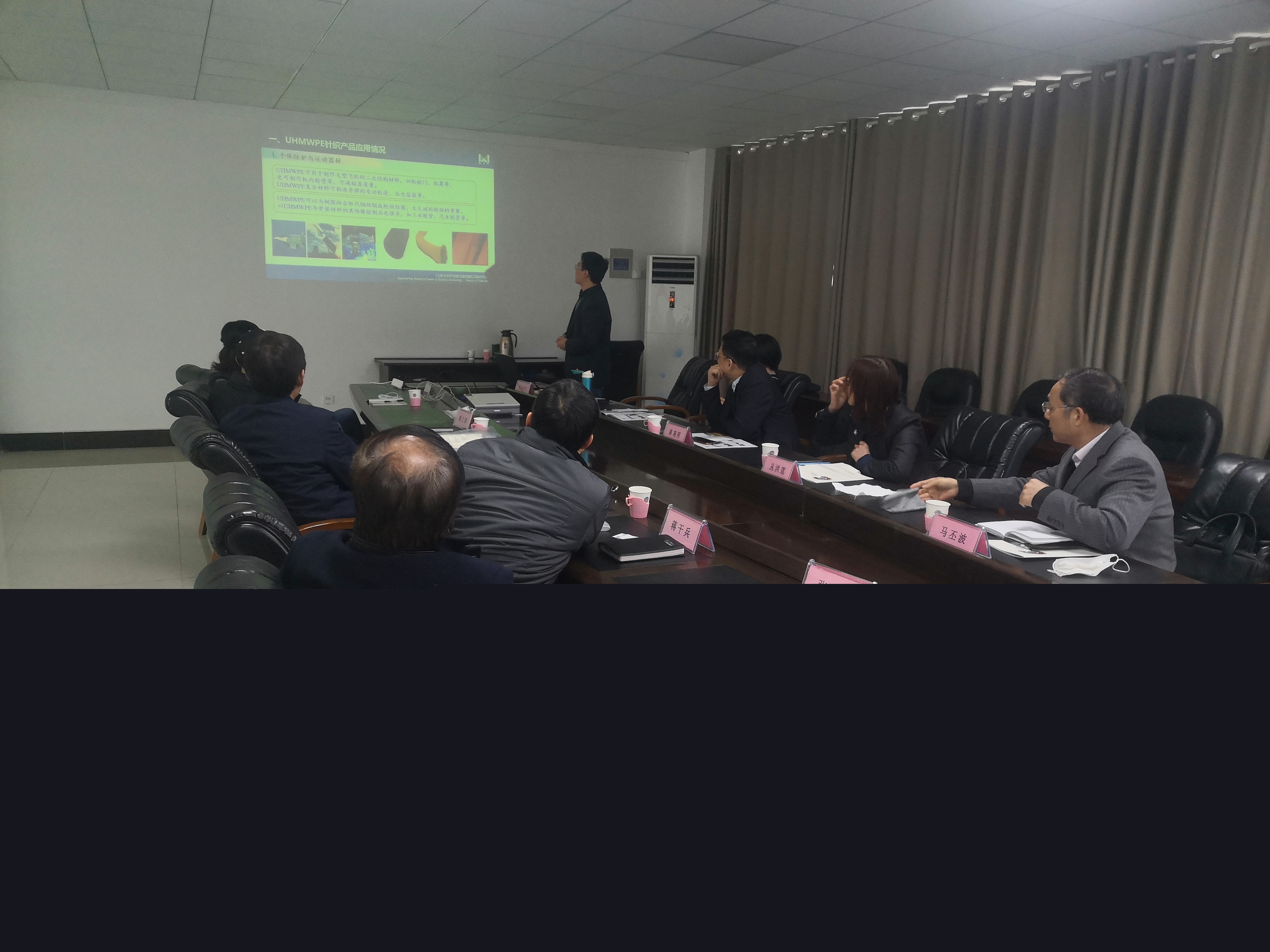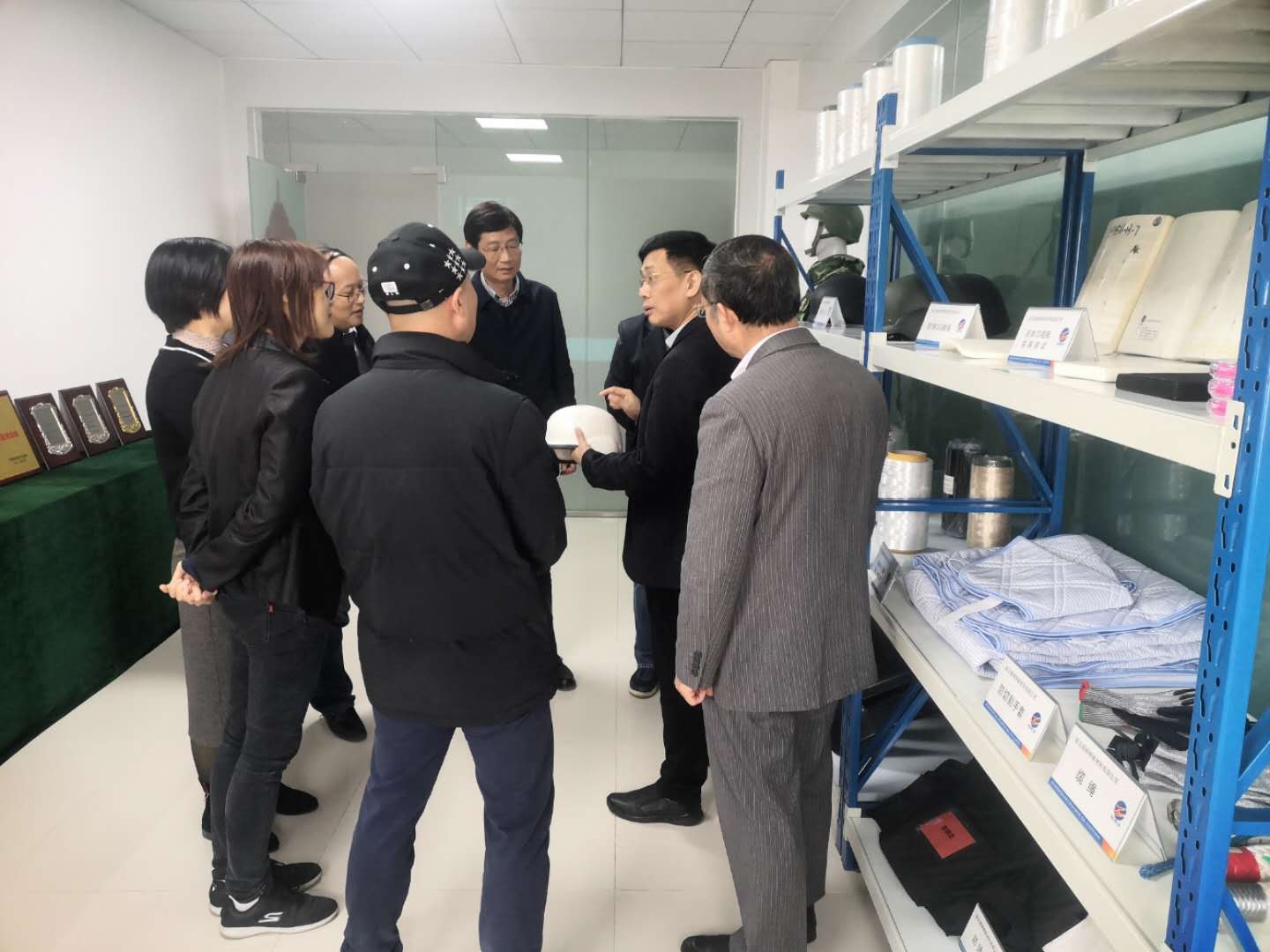 江南大學(xué)蔣高明教授等一行參觀了神特公司產(chǎn)品展示廳,在隨后的交流會上,馬丕波教授作了高強高模聚乙烯纖維針織產(chǎn)品開發(fā)報告,雙方就此進(jìn)行了深入交流。