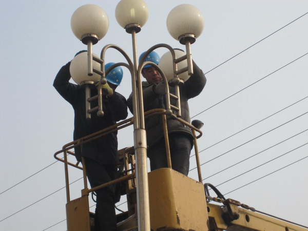 1月13日,青口供電所為了鹽場春節期間的美化、亮化,組織七名職工義務為鹽場搶修路燈。(宋中文)