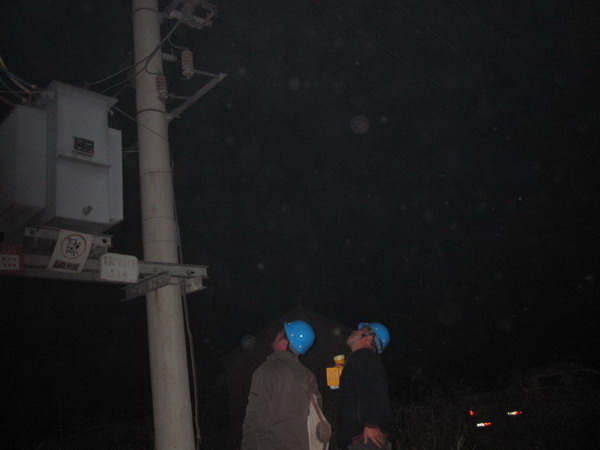 近日,青口供電所為防止配變設備被盜,加強對偏遠地區設備的檢查。圖為職工夜間進行巡視。(宋忠文)