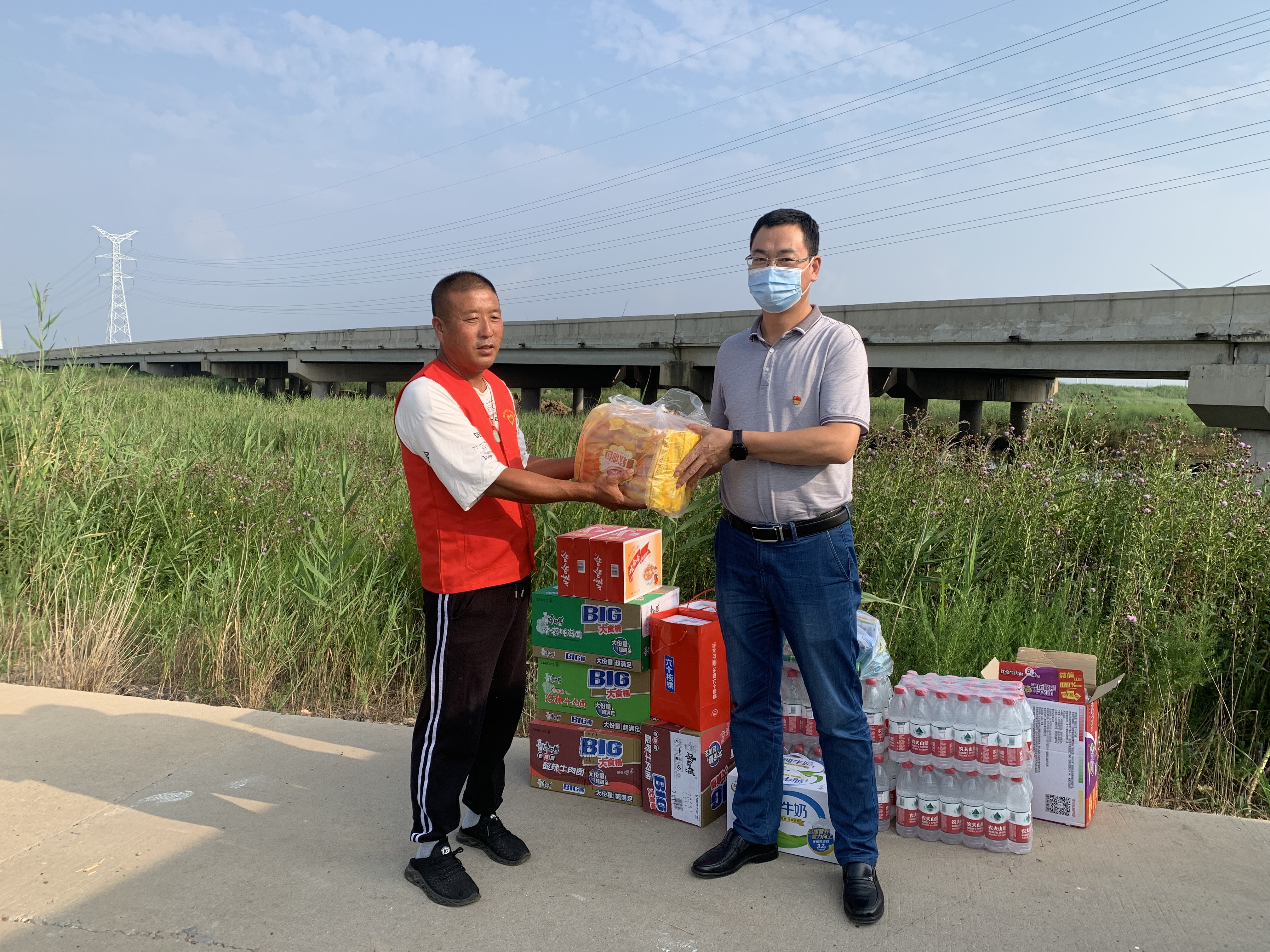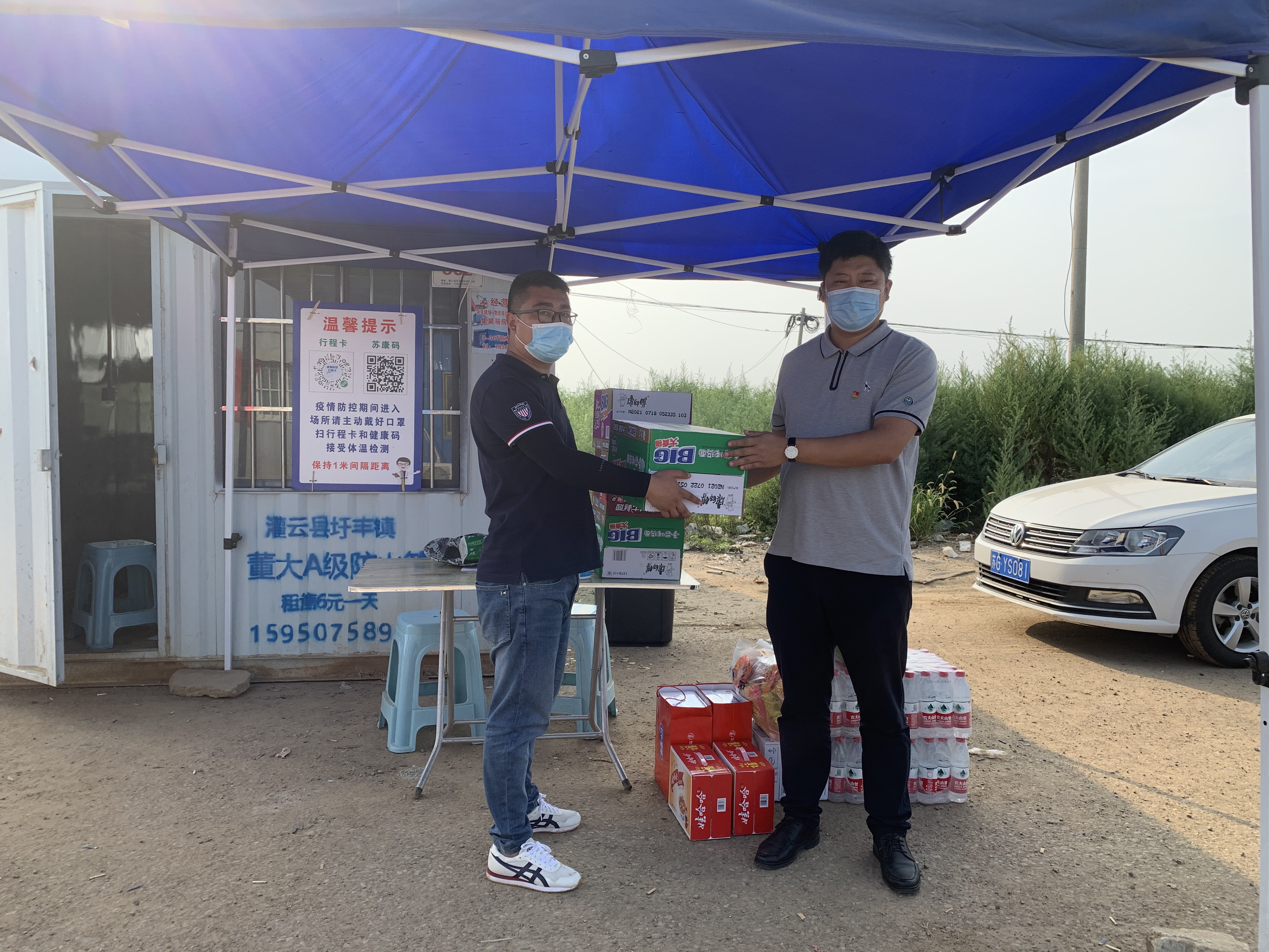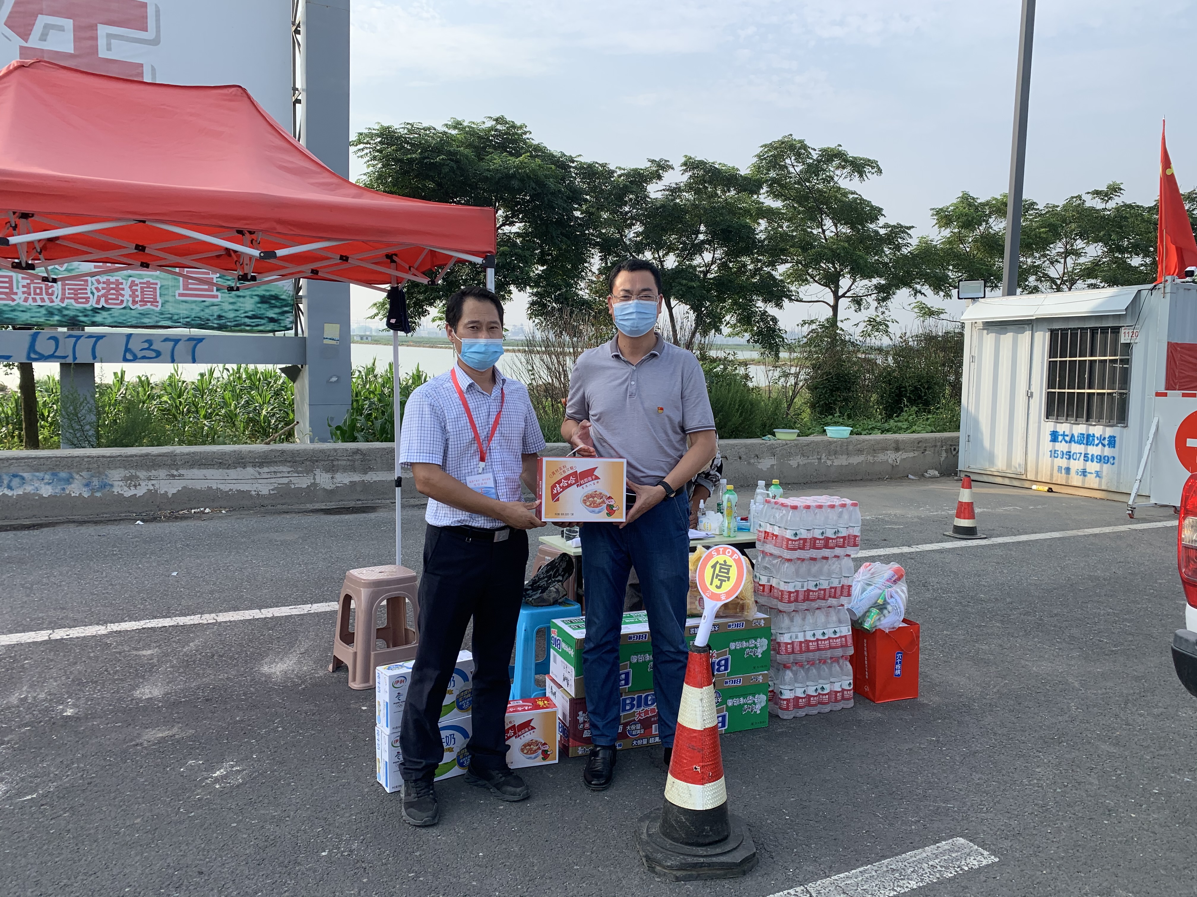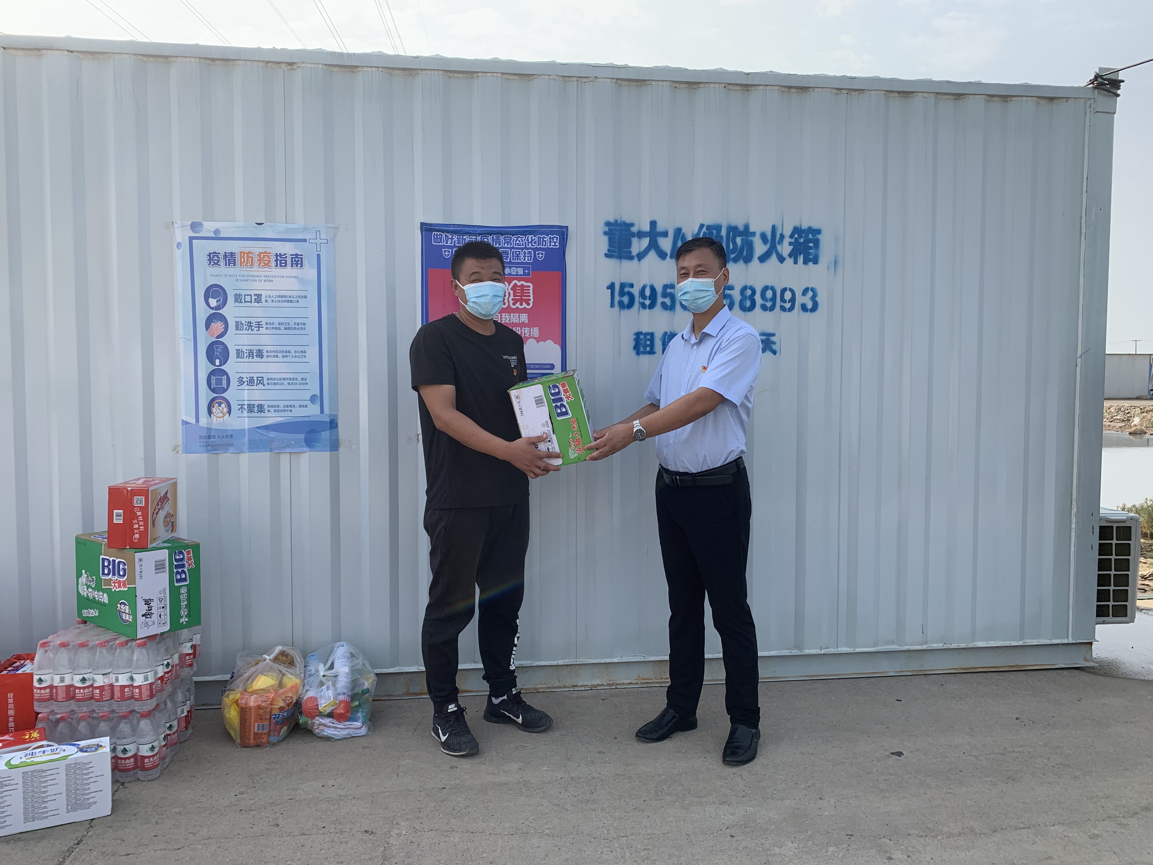 在各個路口卡點,公司領導向始終堅持在疫情防控一線的工作人員及志愿者們致以親切問候和衷心感謝,叮囑大家要強化自我防護,嚴格按照標準、程序、規范做好疫情防控工作,攜手共筑防疫屏障,并親手為他們送上、牛奶、八寶粥、方便面、蚊香等慰問物資。(西工