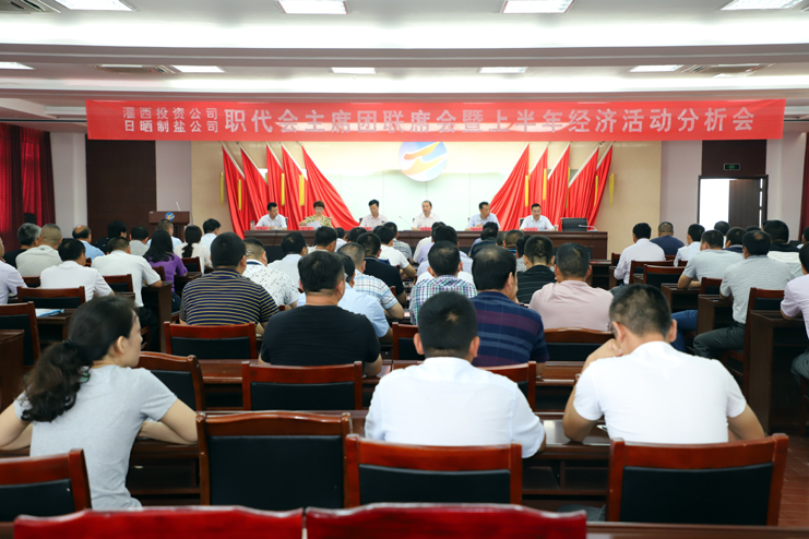 7月13日上午,灌西投資公司十五屆四次、日曬制鹽公司二屆四次職代會主席團聯席會議暨經濟活動分析會,在聯合服務中心五樓會議室隆重召開,公司領導班子全體成員、各單位領導班子成員、機關全體管理人員以及受表彰人員參加會議。會議由公司紀委書記、工會主席王宏主持。