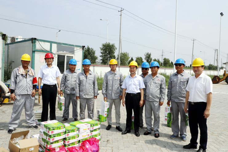 在灌西宵洋公司五灌河碼頭作業現場,胡建明代表集團公司向在一線的碼頭工人們表示深切的感謝和慰問,感謝他們在烈日下為集團所付出的辛勞,并叮囑碼頭工人避開高溫時段,科學合理安排好作業時間,既要保證生產作業質量和進度,又要注意高溫生產作業安全。
