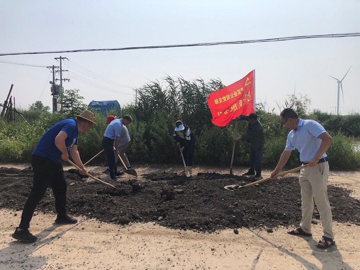 接下來,黨支部書記張文連帶領全體黨員前往一線魚塘參與義務修整魚塘道路活動,對魚塘的主、支道路進行修繕,每個黨員親身參與其中,為建設美麗西旺貢獻自己的一份力量。