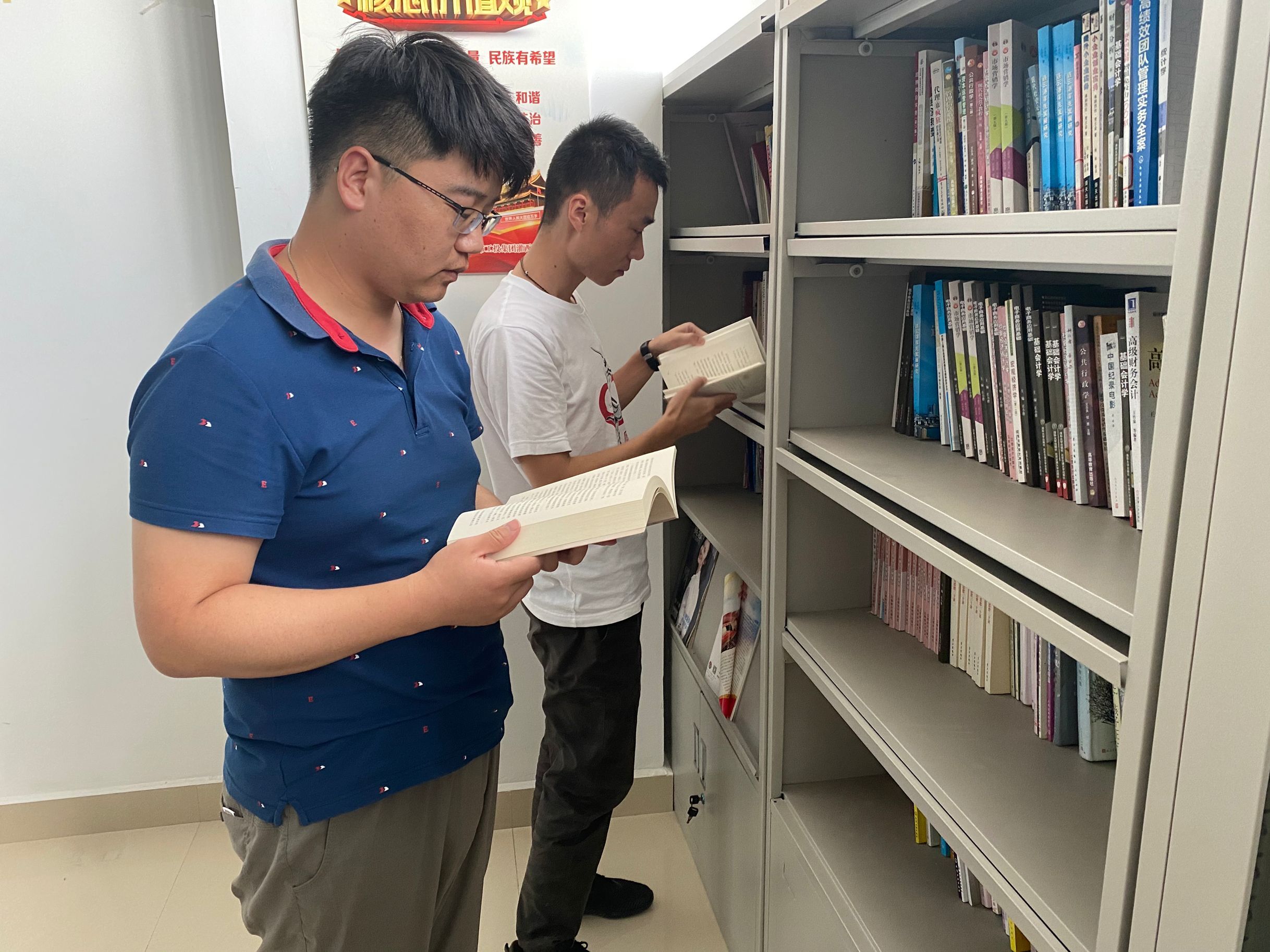 煩躁的時候讀書,可以使人靜心;迷茫的時候讀書,可以使人聰慧。812日下午,又到了相約星期三的讀書活動時間,在灌西投資公司機關四樓讀書室,只見有不少員工正在靜靜地看書,還有的正在挑選書籍,一派濃濃的讀書氛圍。