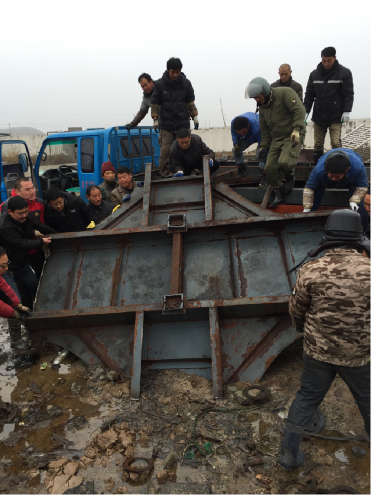 (上圖為標(biāo)準(zhǔn)化廠房的廢棄鋼材運(yùn)送到日曬制鹽3場(chǎng)后家院,機(jī)械設(shè)備服務(wù)中心職工一起搬運(yùn)鋼材。)