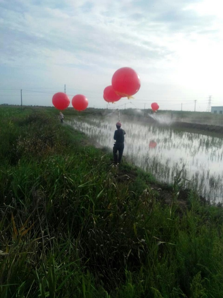實業公司農業分公司加大試驗田管理力度,確保水稻正常生長。 分公司埒南大阜二圩水稻現在正值灌漿期,稻瘟病、紋枯病、鉆心蟲等各種病蟲害隨之而來。近日,為減少人為對水稻的損壞,農業分公司利用新型技術,采取氣球灑藥的方法,對稻田進行噴灑,將防蟲治病工作做到實處。(實業公司)