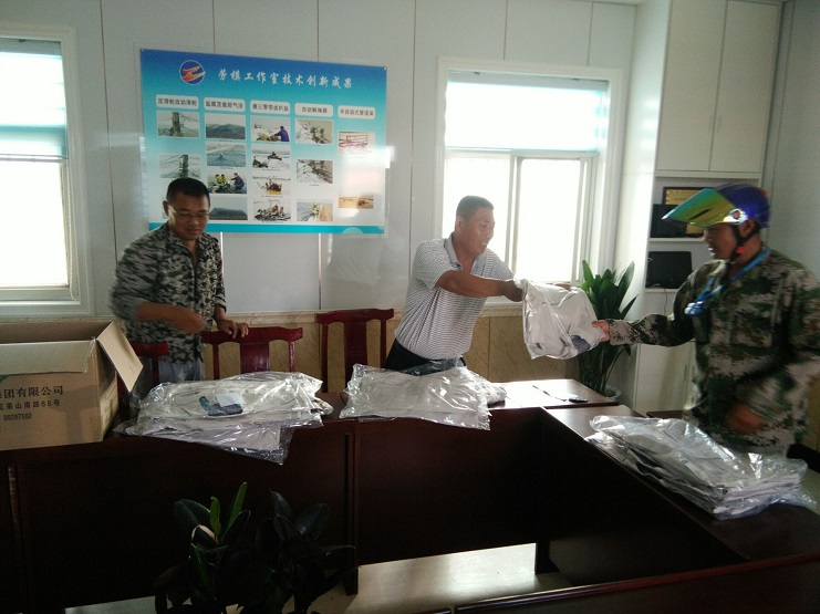 隨著天氣的炎熱,為進一步規范一線員工的著裝,提高員工工作的積極性,我公司在7月25日下午發放夏季工作服,此次發放的工作服布料采用純棉制造,款式新穎,穿起來整體樸素、大方,有精神,有朝氣、舒適透氣,班長洋溢著笑容說:“決不辜負場領導的關心,工作服發的正是時候,我們要以飽滿的熱情干好本著工作,以更好地工作業績回報公司”。 新河制鹽分公司: 江德前 2018年7月25日