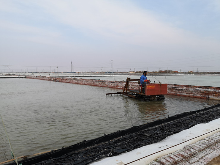 破碴勤、破碴透,才能保證原鹽生產(chǎn)的旺產(chǎn)增收。進(jìn)入2月下旬,雖然受新冠肺炎疫情影響,相關(guān)工作較往年延遲,但新河制鹽分公司科學(xué)組織,嚴(yán)密安排,根據(jù)春季扒鹽節(jié)奏,合理調(diào)配破碴機(jī)械,率先啟動(dòng)原鹽破碴工作。在十班破茬碴現(xiàn)場(chǎng),班組結(jié)晶池內(nèi)熱火朝天,只見一臺(tái)臺(tái)破碴機(jī)快速來回穿梭,正在對(duì)擬春扒格塊進(jìn)行機(jī)械破碴。勞模創(chuàng)新工作室成員、班長匡洪忠查看破碴的鹽池板后,臉上露出滿意的微笑,他說:“通過近幾年的小改小革,現(xiàn)在機(jī)械破碴格塊只要一個(gè)小時(shí)就全部到位,而且質(zhì)量比人工破碴好,大大地減輕了職工勞動(dòng)負(fù)荷。”