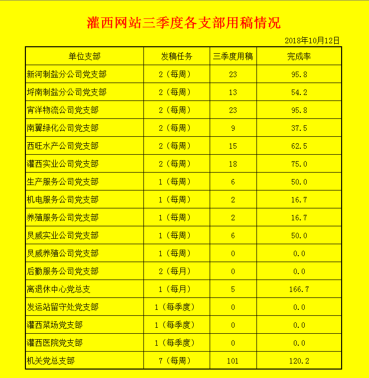 灌西網站三季度各支部用稿情況