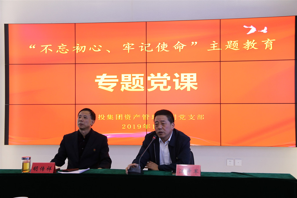 | 為教育引導(dǎo)黨員干部不忘初心,牢記使命,擔(dān)當(dāng)作為,開拓創(chuàng)新,奮力譜寫金融工作新篇章,10月10日下午,資產(chǎn)管理公司黨支部舉行“不忘初心、牢記使命”主題教育黨支部書記講黨課活動,資產(chǎn)管理公司黨支部書記、董事長胡傳祥同志講授“初心不改,擔(dān)當(dāng)作為,創(chuàng)造無愧于時代的工作業(yè)績”主題黨課,集團(tuán)黨委第一指導(dǎo)組同志到會指導(dǎo)。