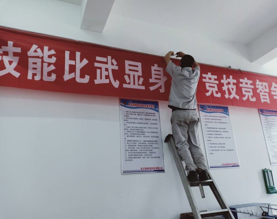 ? ? ? ? ??為營造技能大賽氛圍,77日上午,品質管理部特地請維修組件班組朱師傅、王師傅在品質管理部辦公區掛上宣傳橫幅。維修組件班組的兩位師傅不怕麻煩,多次調整橫幅的角度,力求做到盡善盡美,為營造技能大賽氛圍貢獻自己的力量。