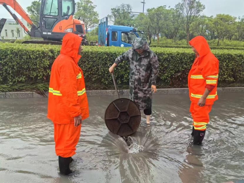 盛達(dá)市政分公司支委在“責(zé)任區(qū)”一線指揮,黨員沖鋒在前,24小時(shí)不間斷,在防汛一線筑牢“紅色城墻”,全力守護(hù)人民群眾生命財(cái)產(chǎn)安全。前后出動(dòng)車輛設(shè)備10余輛,處理道路積水20余處,應(yīng)急開(kāi)放閘9次,處理12345平臺(tái)案件100余件,應(yīng)急打開(kāi)圍堰4處,24小時(shí)監(jiān)護(hù)新光和花果山涵洞,緊急處理公交站臺(tái)、交通標(biāo)志牌等城市家具傾倒7處;翔立分公司多次緊急“處警”,快速修復(fù)開(kāi)太閘電路等多處電力故障,保障開(kāi)發(fā)區(qū)泄洪秩序。