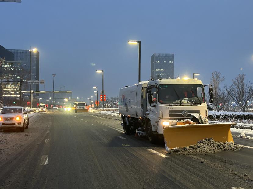 上午10時許,暴雪如約而至。裝有融雪劑的車輛全部整裝待發(fā),聞令而動,采取“人工+機械”不間斷作業(yè)模式,對轄區(qū)主次干道、橋涵、火車站東站、創(chuàng)智大廈等帶坡路段及時拋撒融雪劑,采取“滾刷+鏟車”組合方式,反復(fù)排掃路面積雪,確保主次干道、帶坡路段通暢無冰。