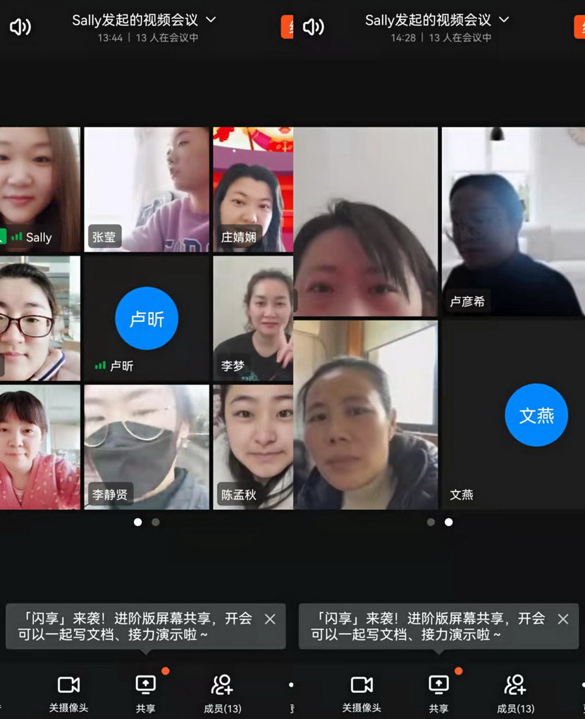 線上貢獻(xiàn)篇。“縱然居家隔離,一樣不防礙我們做貢獻(xiàn),我們線上服務(wù)已經(jīng)開啟”三八節(jié)這一天,在社區(qū)忙碌一天的公司女工委副主任宋文靜又特意安排了“三八”節(jié)線上活動。這一天活動精彩紛呈:首先是視頻連線,通過廣大女工并向她們家人傳達(dá)市委市政府以及集團(tuán)黨委、投資公司黨委關(guān)于疫情防控文件精神。其次共同學(xué)習(xí)全國“兩會”會議精神。第三,開展公司“三新”解放思想大討論線上論壇,圍繞疫情防控、生產(chǎn)經(jīng)營,尤其是企業(yè)轉(zhuǎn)型發(fā)展出謀劃策。最后還來了點(diǎn)小游戲-成語“飛花令”,給嚴(yán)肅的疫情防控增添了一息歡樂的氛圍。