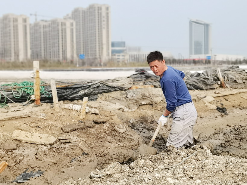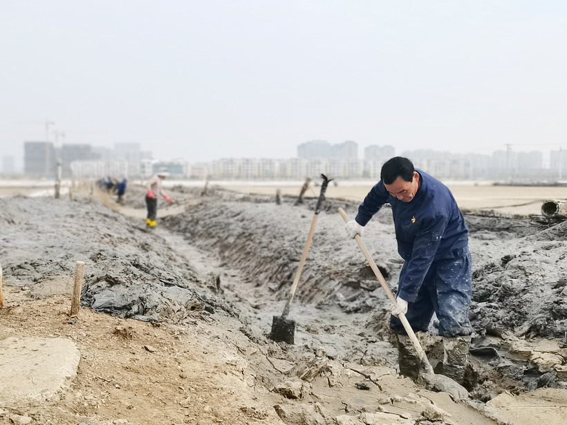 下一站,我們來到海州灣公司先鋒班組,老職工、老組長沈秀成帶領全組職工正在疏通進鹵溝,他們揮動著鐵锨,泥土隨著锨頭準確地落到了堰邊上,一條筆直的新轉溝在沈組長身體的不停移動下逐漸形成,看著他那揮汗如雨極為投入的熱情,我們慢慢地向他走進。沈組長看到我們的到來,丟下手中的鐵锨,抹了一把汗水,上前熱情和我們打招呼。他告訴筆者:“堿廠關了,外面人都說臺北不行了,我偏不信,我們臺北黨委有戰略眼光,我們抓住鹽價上漲大好時機,礦鹵復產正當時。自公司冬準工作開展以來,我們已經完成先鋒班組改灘。現在已經入春,2月底我們一定要搶灌池,搶長鹽,爭取為公司創收創效早做貢獻!”看著老組長神采奕奕的表情,侃侃而談的神態,看著那一條條堰棱整齊,條線筆直的池堰,對這位一輩子奮斗在一線的老員工產生了一種敬仰之情。