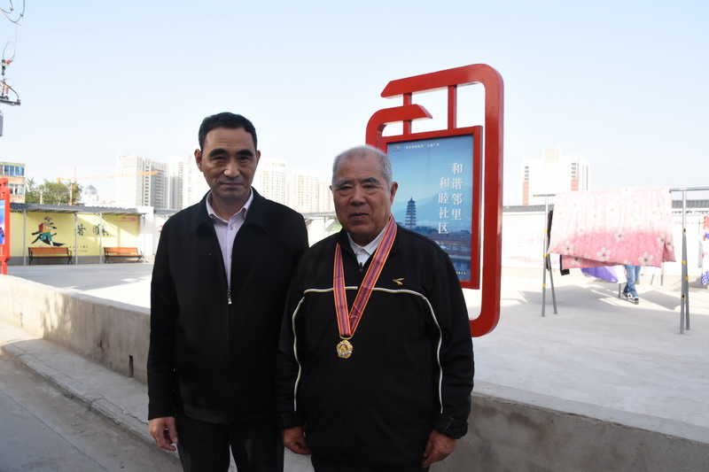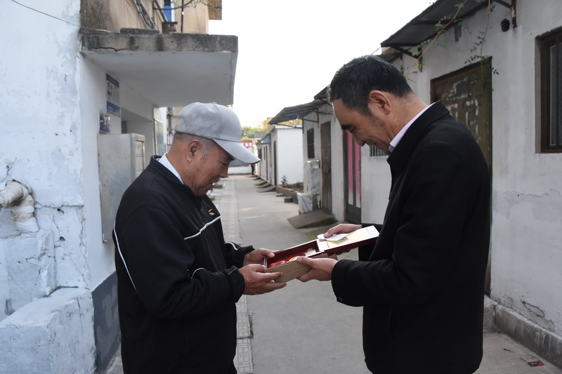 解韻波同志今年83歲,1956年1月參軍,那年19歲,同年6月經(jīng)過短期高強(qiáng)度培訓(xùn),作為無線電通訊兵出國抗美援朝。1959年西藏達(dá)賴集團(tuán)發(fā)動叛亂,剛回國不久的解韻波作為無線電技術(shù)兵種隨即跟隨大部隊(duì)入藏平叛。至今他仍保留著抗美援朝軍功章,入藏平叛軍功章、紀(jì)念章等。1962年退伍分配至臺北鹽場工作,1997年退休。今天慰問的時候,在鄰居們的簇?fù)砗推G羨之中,還沒進(jìn)家門,鄰居們就迫不及待地要求打開“紀(jì)念章”一睹風(fēng)采。紀(jì)念獎?wù)聮煸诶蠎?zhàn)士胸前,一眾鄰里夸贊不斷:這份榮譽(yù)沉甸甸的。這份榮譽(yù)是拿命換來的。這是不得了的榮譽(yù)啊。這樣的老兵是我們的寶貝哦,我們要尊敬啊。……就在小區(qū)活動廣場上,老戰(zhàn)士與大家暢談起保家衛(wèi)國光榮的戰(zhàn)斗經(jīng)歷,烽煙往事歷歷在目。退伍后,不褪軍人本色,幾十年如一日立足家鄉(xiāng)建設(shè),為臺北鹽場奉獻(xiàn)青春,為國家建設(shè)貢獻(xiàn)力量。大家對解韻波老戰(zhàn)士的革命戰(zhàn)斗和建設(shè)祖國的歷程表示由衷贊嘆和敬佩。