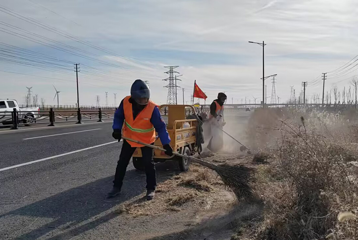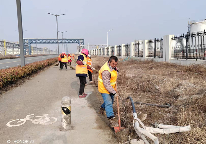 連日來,為保障園區道路周邊優美整潔環境。保潔分公司因勢而動,強化路邊枯草、人行輔道、管廊垃圾治理,處處彰顯徐圩悅升人敬業畫面,辛勤勞動場景構成寒冬里最美靚麗風景線。
