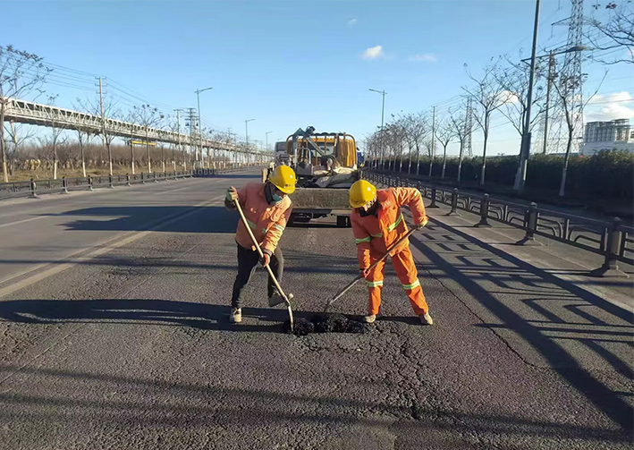 此次修補主要針對海濱大道、港前大道、蘇海路、陬三路等主次干道破損的、坑洼的路面進行修補。12月15日—17日,在各主要路段看到,施工機械設備及人員搶抓晴好天氣,對管養路段路面坑槽進行修補,期間大家各司其職對路面坑槽進行銑刨、清渣、瀝青攤鋪、壓實整平......各個工序有序展開,修復后的路面平整、美觀。經過三天的緊急搶修,已完成海濱大道、港前大道、蘇海路瀝青路面修補工作,修復總面積約180平方米,使用瀝青冷補料10余噸。