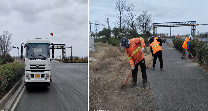 ? ? ? ?突擊處理“一馬當先”。該分公司園區兩個班組雙休期間,及時服從徐圩城建活動保障路線整改要求,強化蘇海路路面兩側施工圍檔,石化三路中風帶護欄清洗力度。班組人員兩人一對,三人一組,無懼徐圩海風吹透身體,揮動手中拖把清洗圍檔,護欄長達1000多米長,清除車輛拋灑積土20余處,用辛勤勞作汗水踐行勞動本色。